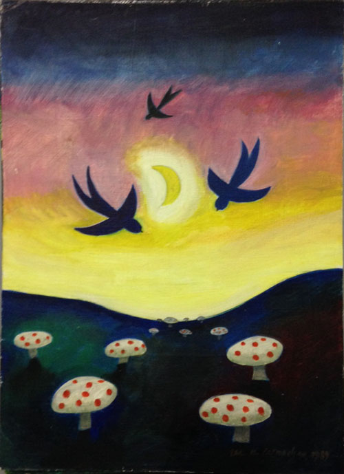 Birdmen Swooping, 1969. This was painted to illustrate one of Linsey Levi's poems. (Lindsey was a poetess in Edinburgh.)