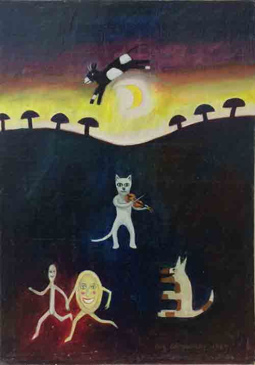 The Cow Jumped Over The Moon, 1989. This was painted to illustrate one of Mrs Gray's re-imagined traditional poems. (I need to slightly restore it, nothing major.)